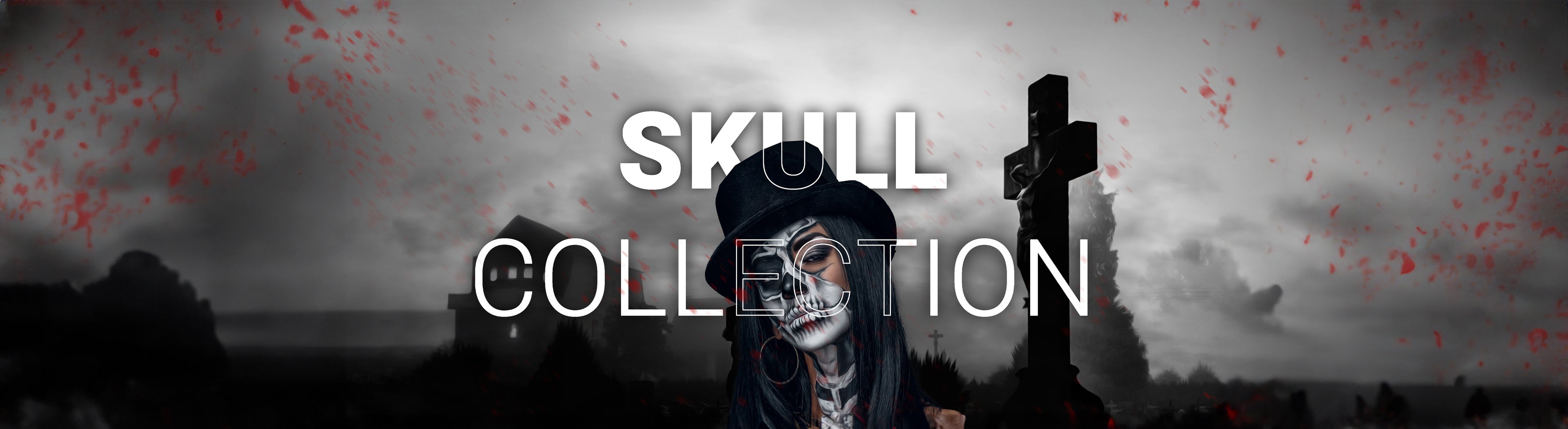 JedesDesign dieser Kollektion erzählt eine einzigartige Geschichte, indem es Berufe, Orte und Lebenseinstellungen in kunstvoller Weise mit dem verbindenden Stilmittel eines Schädels vereint.